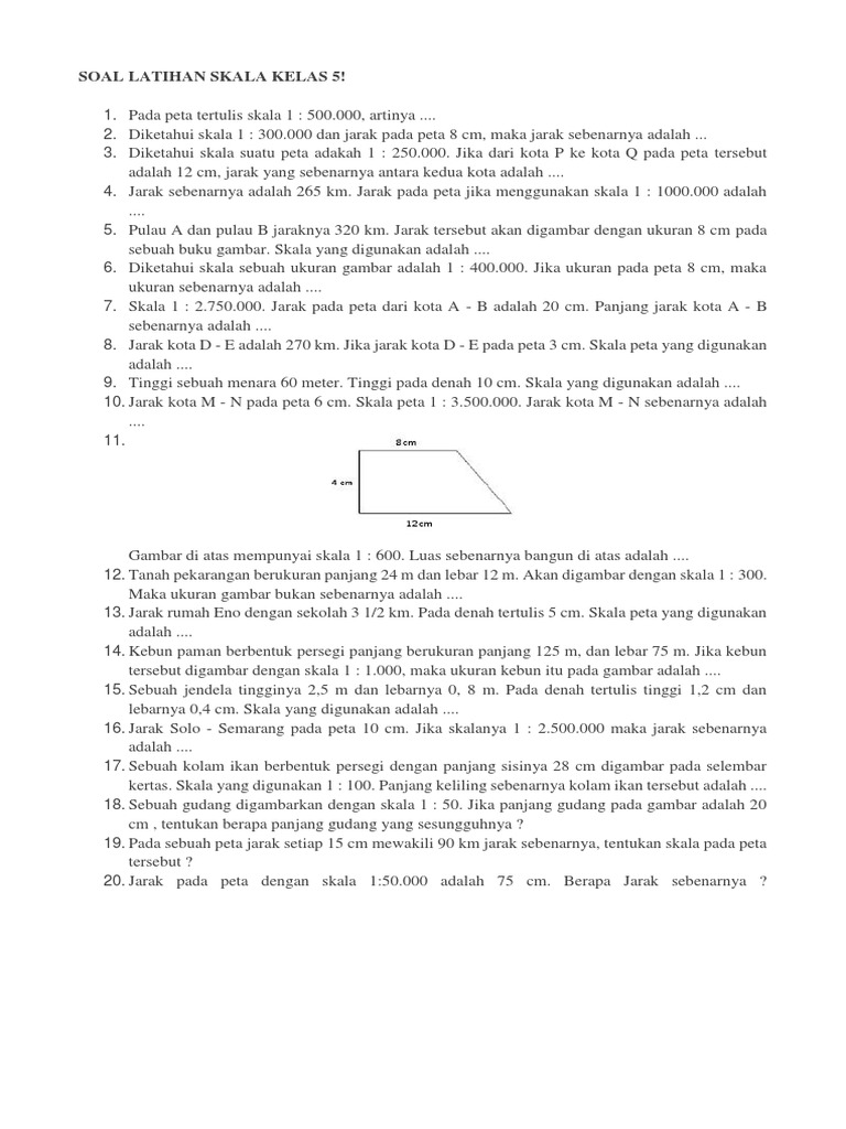 Skala Kelas 5 / Soal Ulangan Harian Matematika Materi Perbandingan Dan Skala Kelas 5 Diary Guru : Melalui berbagai latihan siswa mengidentifikasi dan menyelesaikan masalah berkaitan dengan skala pada denah