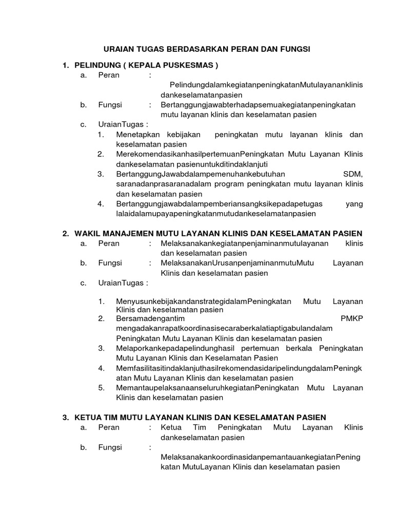 / Uraian Tugas Tim Mutu Puskesmas / Doc Struktur Organisasi Peningkatan Mutu Dan Keselamatan Pasien Pmkp Sammy Fendy Academia Edu / Use the download button below or simple online reader.